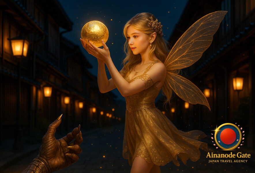 In the narrow lanes of Kanazawa’s Higashi Chaya District, the evening air hums softly with the sound of shamisen strings. Lanterns flicker like captured fire spirits, painting the wooden lattice walls in threads of gold. That’s where I met today’s guest — Ildra, a light-elemental fairy with wings that shimmered like molten glass.
