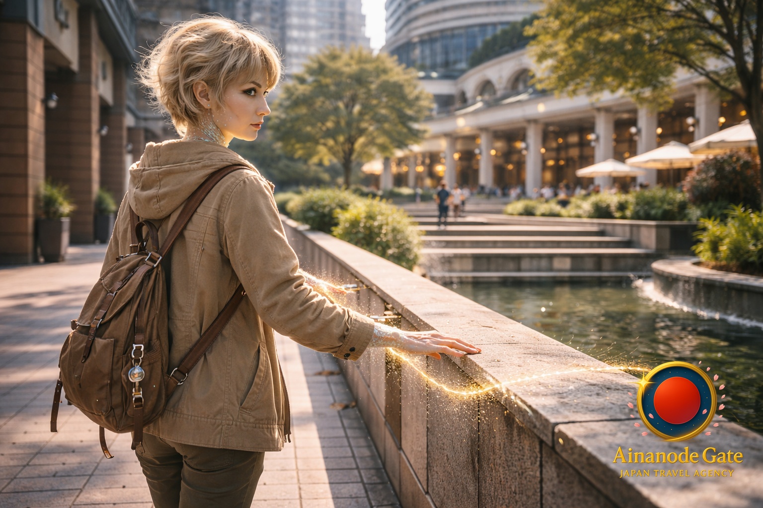 In Ebisu Garden Place terrace, I realize the route stays welcoming because easing my pace along the outer bench line lets my questions slow with the widening space, and that realization feels worthwhile enough to guide how I listen to Mira’s glow on future stacked streets.