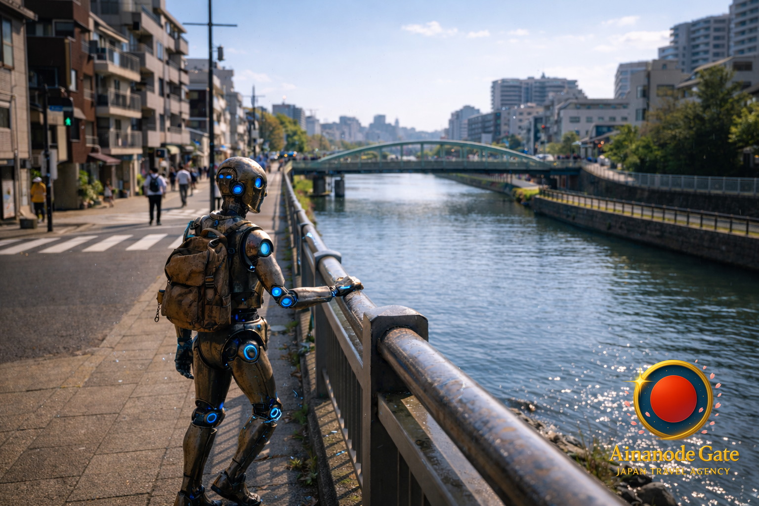 On the street leading toward the Nakagawa bridge in Kameari, my hip servos settled into a smoother interval and heat vents along my back casing released evenly. I chose the slight slope by the park entrance instead of the busier lane because repeated stop-start motion causes micro-jitter in my ankle joints.