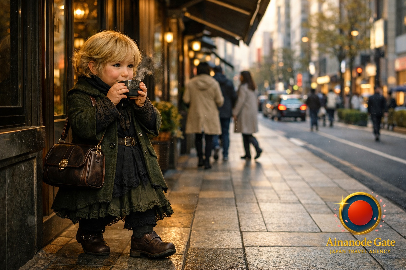 Under the slim awning of a Namiki-dori tea kiosk, I kept sipping hot yuzu tea from a ceramic cup, and the citrus steam warmed my cheeks while my breath slowed into an easier rhythm that made the block feel quietly generous.